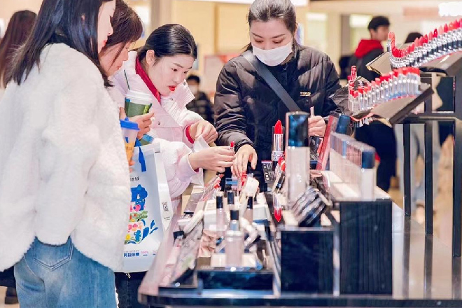 近日,点燃记者走访常州各大商圈发现,消费在各种“三八”妇女节促销活动的热潮带动下,不少线下门店已迎来消费增长,新热点在化妆品柜台、江苏经济女性饰品店、常州场景催生服饰店……都能看到“女神”选购的特色身影。当下,点燃在特别的消费日子里“给女神买一份礼物”已成为寻常之事。