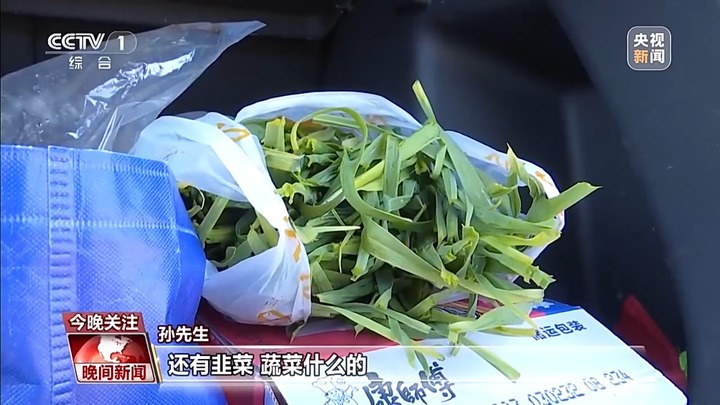 孙先生:我爸妈也是从老家带了一些鸡蛋、鸡肉,还有韭菜、蔬菜什么的。其实这东西,哪都能买到,但是爸妈还是不放心。即便是现在三十几岁了,但是爸妈还是对我们像小孩一样温馨。