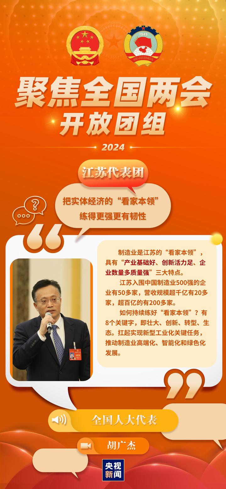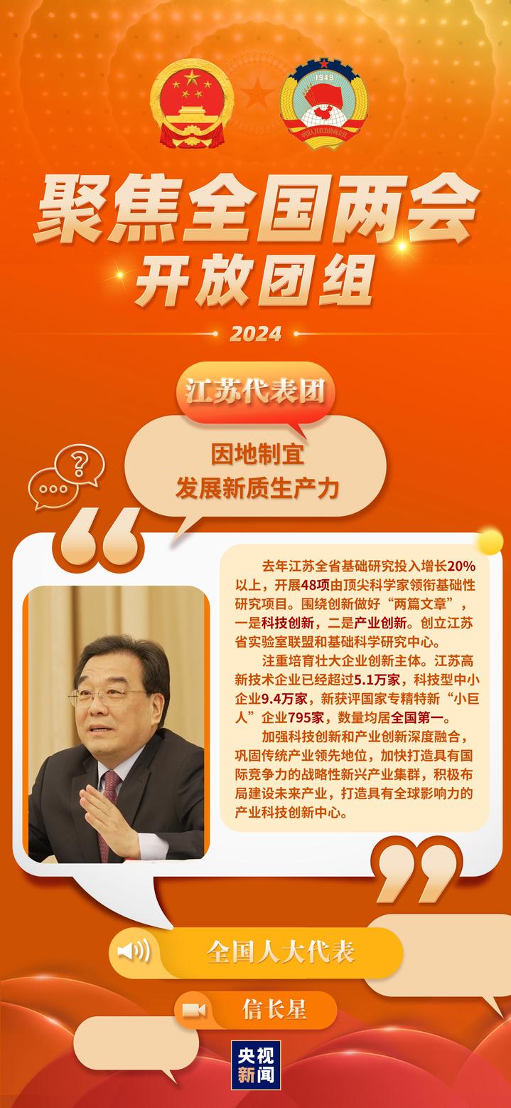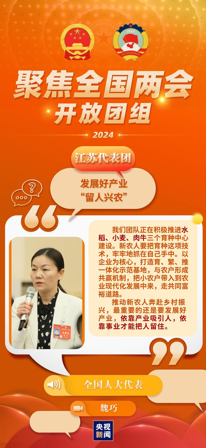 今天(3月7日)上午,聚焦江苏出席第十四届全国人大二次会议的两会力江苏代表团举行开放团组活动。就媒体关心的开放发展新质生产力、推进新型工业化、团组农业现代化、丨新优秀传统文化传承等相关问题,质生代表们在现场回答记者提问。产力