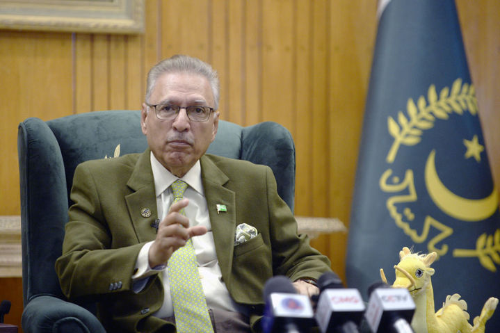 2月7日,在巴基斯坦伊斯兰堡,巴基斯坦总统阿尔维接受新华社和其他中国媒体联合采访。新华社发(艾哈迈德·卡迈勒摄)