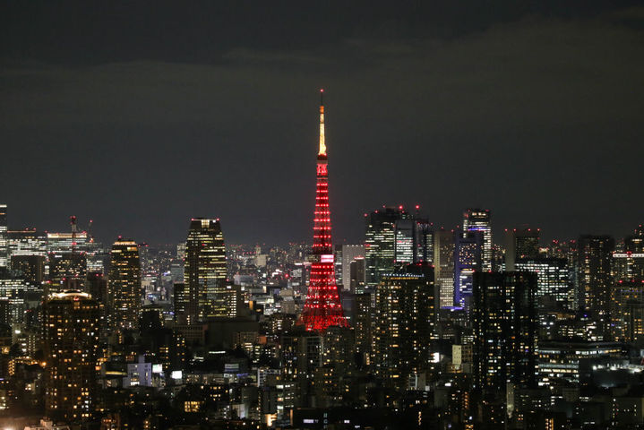2月9日晚,日本东京的地标性建筑东京塔点亮“中国红”,庆祝中国农历新年。新华社记者 岳晨星 摄