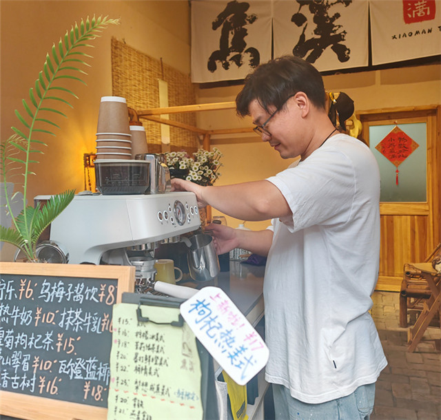 冬日暖阳洒满焦溪古镇,走在小巷深处,阵阵咖啡香气从“小满茶铺”扑鼻而来。