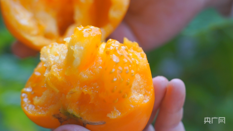 成熟的黄柿子皮薄肉厚、沙甜可口(央广网记者 魏全民 摄)