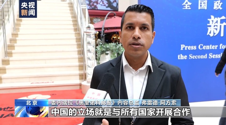 委内瑞拉《奥里诺科邮报》内容总监 弗雷德·阿方索:中国主张捍卫和平,近年来中国在拉美国家中的影响力不断扩大,正是因为中国致力于国家和人民的发展,并实现国与国的双赢。中国不会像西方国家那样掠夺他国财富,中国将永远是拉美国家的朋友。中国的立场就是与所有国家开展合作,我们也视这种立场为所有国家的榜样。