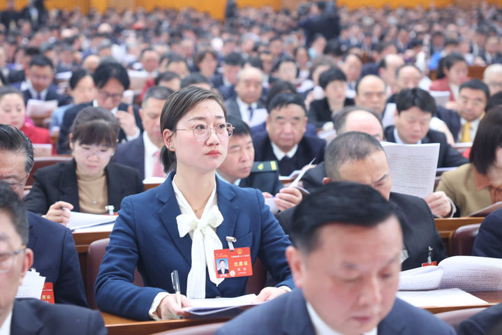 3月5日,徐瑶代表在十四届全国人大二次会议开幕会上听会。