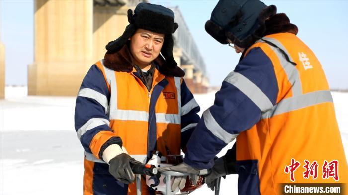 11日6点,新春换好工作服,走基中欧中安清点好工具,层国中国铁路哈尔滨局集团有限公司佳木斯工务段路桥车间8名桥隧工,境守极寒就准备好赶赴100多公里外的桥班全行中俄界江黑龙江。